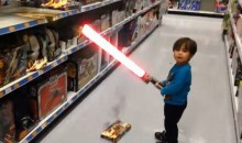 En ple centre comercial, un nen agafa una espasa làser de Star Wars i passa això…