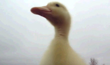 Aquest pobre aneguet, a falta de pares biològics, segueix el seu pare adoptiu allà on ell va. Si el noi corre, l’animal també ho fa – i no veieu amb quines presses-. Si de cop el jove para, l’ànec es