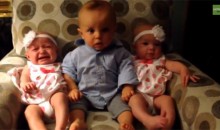 No pot comprendre que les seves dues germanes siguin idèntiques. Això és el que li va passar a un bebè anomenat Landon, que va ser gravat pels seus pares mentre es trobava tendrament confós per la semblança de les petites