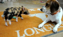 Ja sabem que els gossos, quan no tenen altres gossos amb qui jugar, a vegades trien el seu amo o, a vegades, prefereixen escollir al primer animal que troben, per divertir-se. I aquest gos tria a un petit porquet amb