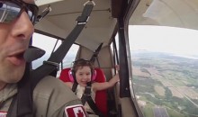 Aquest és el primer passeig acrobàtic d’aquesta nena. La petita va dir al seu pare que volia pujar al seu avió i va aprofitar per demanar-li que donés unes quantes voltes de cap per avall. I dit i fet! No