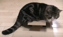 Li posen una caixa petita, ell hi entra dins. Li ofereixen una caixeta prima, s’hi queda estirat damunt. I si al terra hi ha una caixa estreta, el gat intenta entrar-hi, però al final…cau! Resultat: Aquest gat mai no es