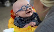 Aquest bebè de quatre mesos, anomenat Leopold, ha vist a la seva mare per primera vegada, gràcies a unes ulleres especials per al seu problema de visió. El petit pateix albinisme total o oculocutani, que no només afecta a la